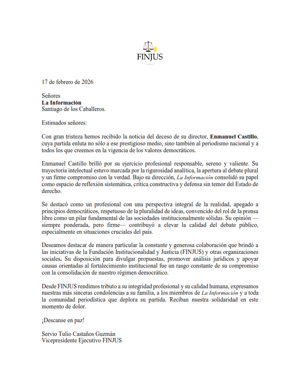 FINJUS VALORA ALTAMENTE LA CARTA PASTORAL DEL 21 DE ENERO DE 2026