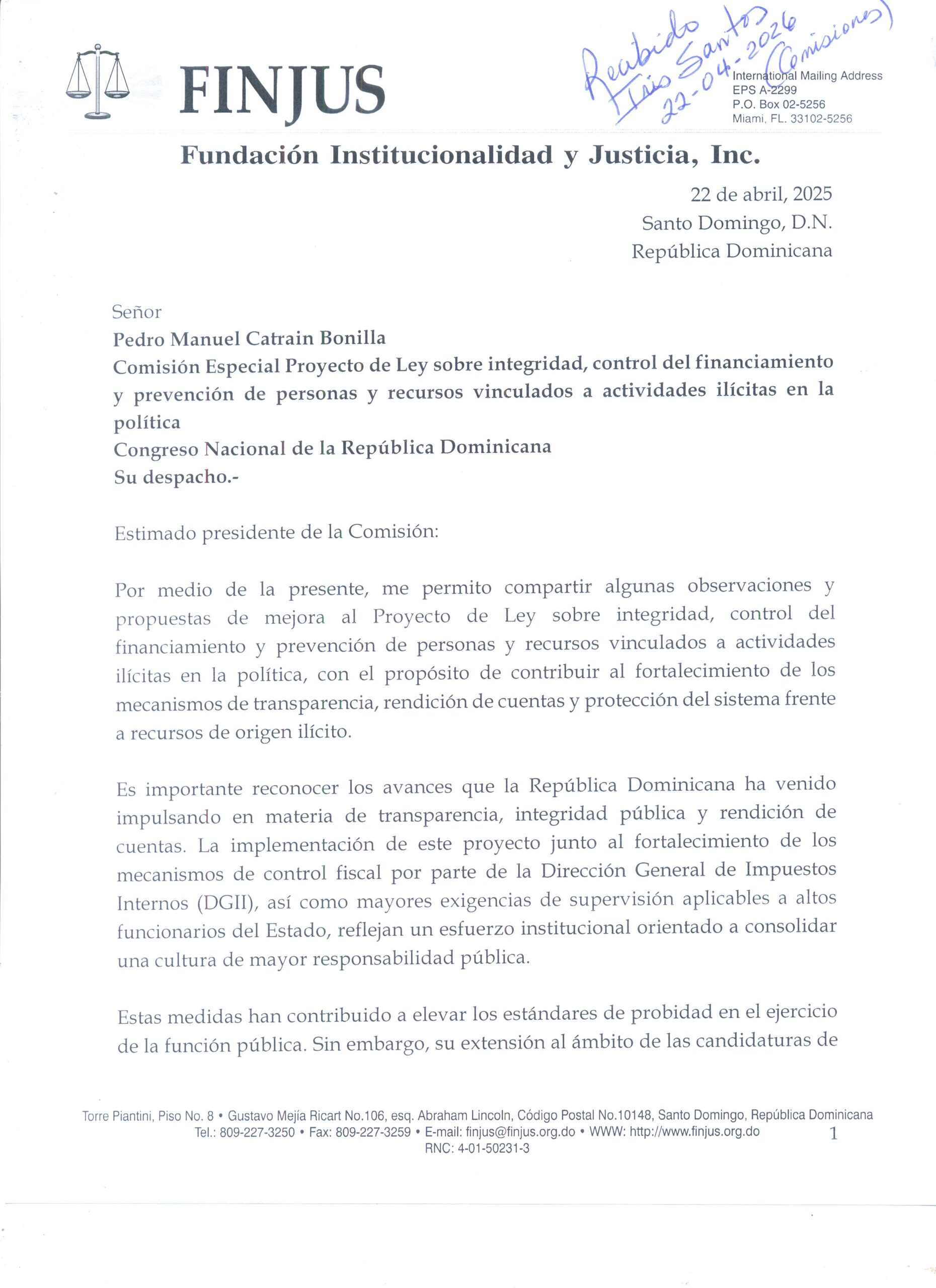 Análisis Proyecto de Ley sobre integridad, control del financiamiento y prevención de personas y recursos vinculados a actividades ilícitas en la política, con el propósito de contribuir al fortalecimiento de los mecanismos de transparencia, rendición de cuentas y protección del sistema frente a recursos de origen ilícito.